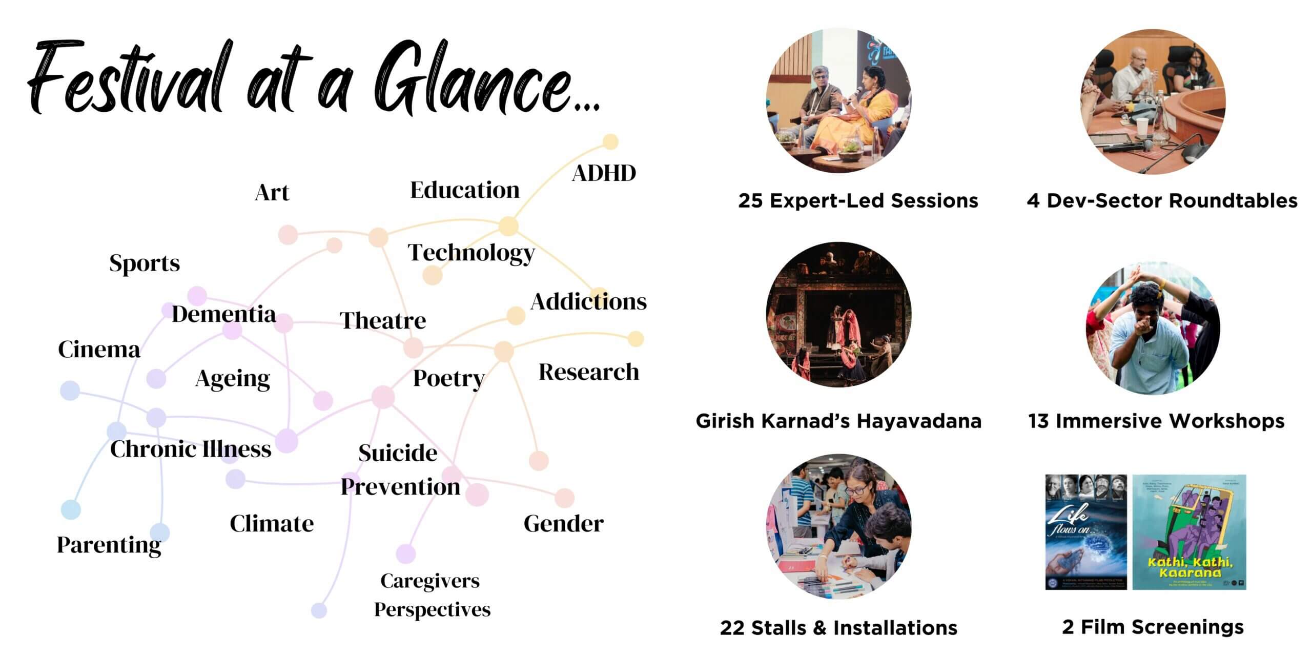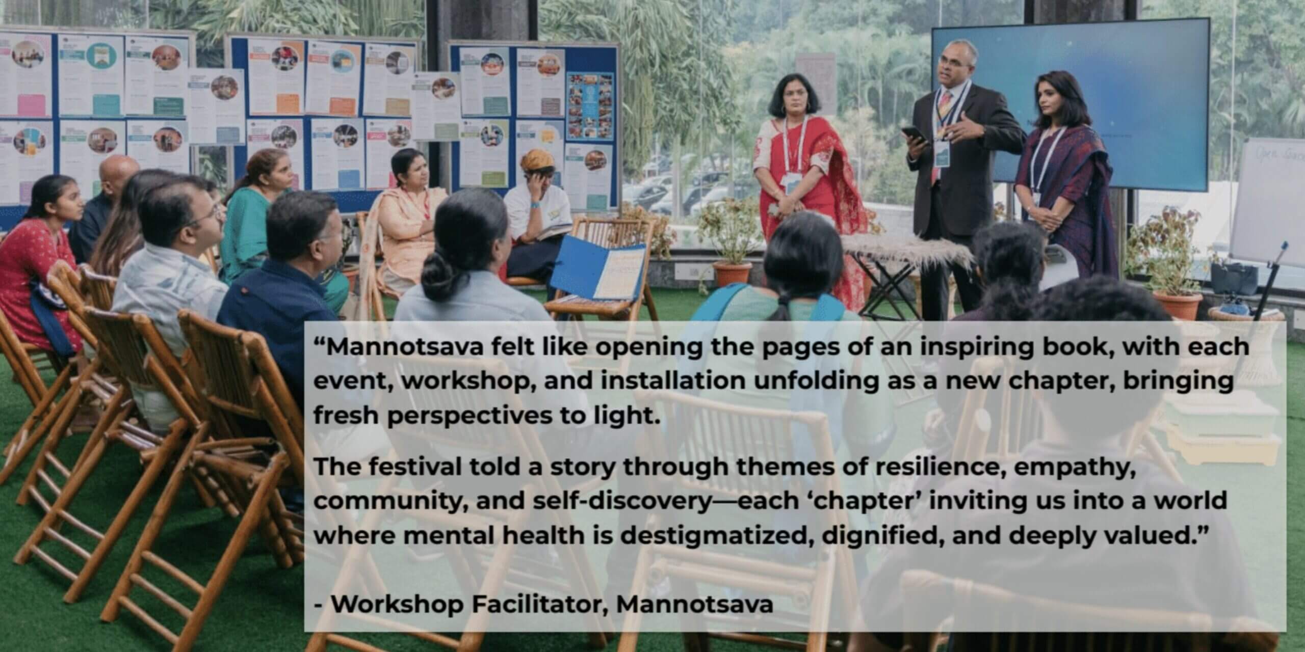 The first edition of the festival came to life in October 2024 at the NIMHANS Convention Center, Bengaluru. In collaboration with over 35 partners, the festival attempted to make credible information, expert practitioners, and discourses at the forefront of practice and research in Mental Health accessible to all.